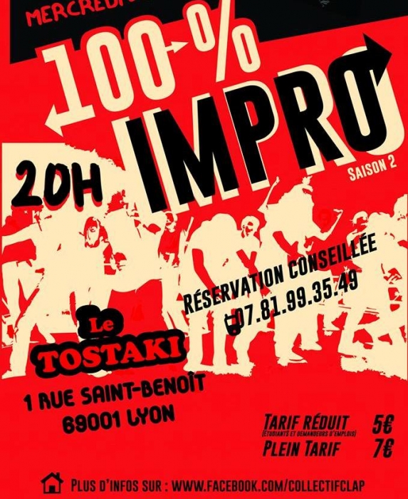 C'est le dernier de la saison et ça va juste être de la folie ! Tu connais le speech : Des Improvisateurs complètement barrés, un zicos chevelu et surtout un public au top, et c'est pour ça que tu dois viendre !