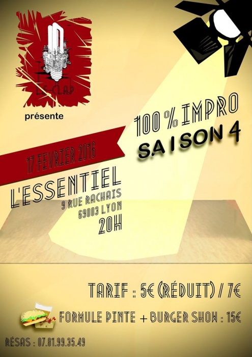 Pour sa troisième saison, le 100% Impro du C.L.A.P prend ses quartiers à l'Essentiel pour des soirées d'improvisation toujours plus folles et plus surprenantes !
