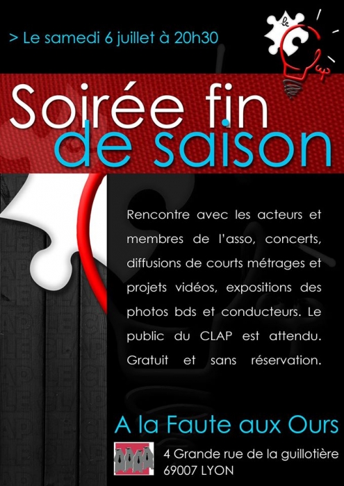 Vendredi, Soirée du CLAP avec pleins pleins de surprises à La Faute aux Ours.