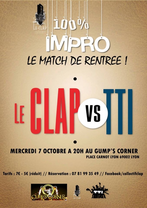 LA TROUPE D'IMPRO DU CLAP vous donne rendez-vous au Gump's corner (Perrache) pour son MATCH de Rentrée !